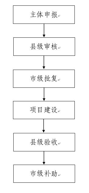 四、申报程序:按照“主体申报、县级审核、市级批复、项目建设、县级验收、市级补助”的流程进行。