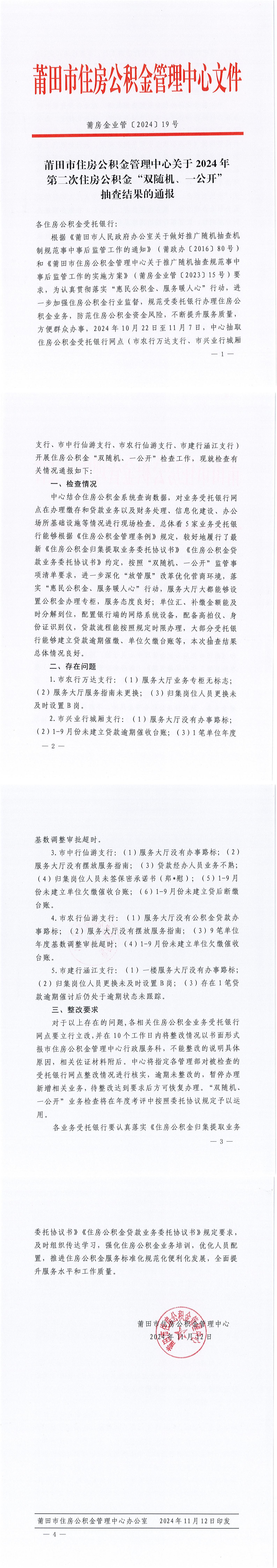 2024年第二次住房公积金“双随机、一公开”抽查结果的通报