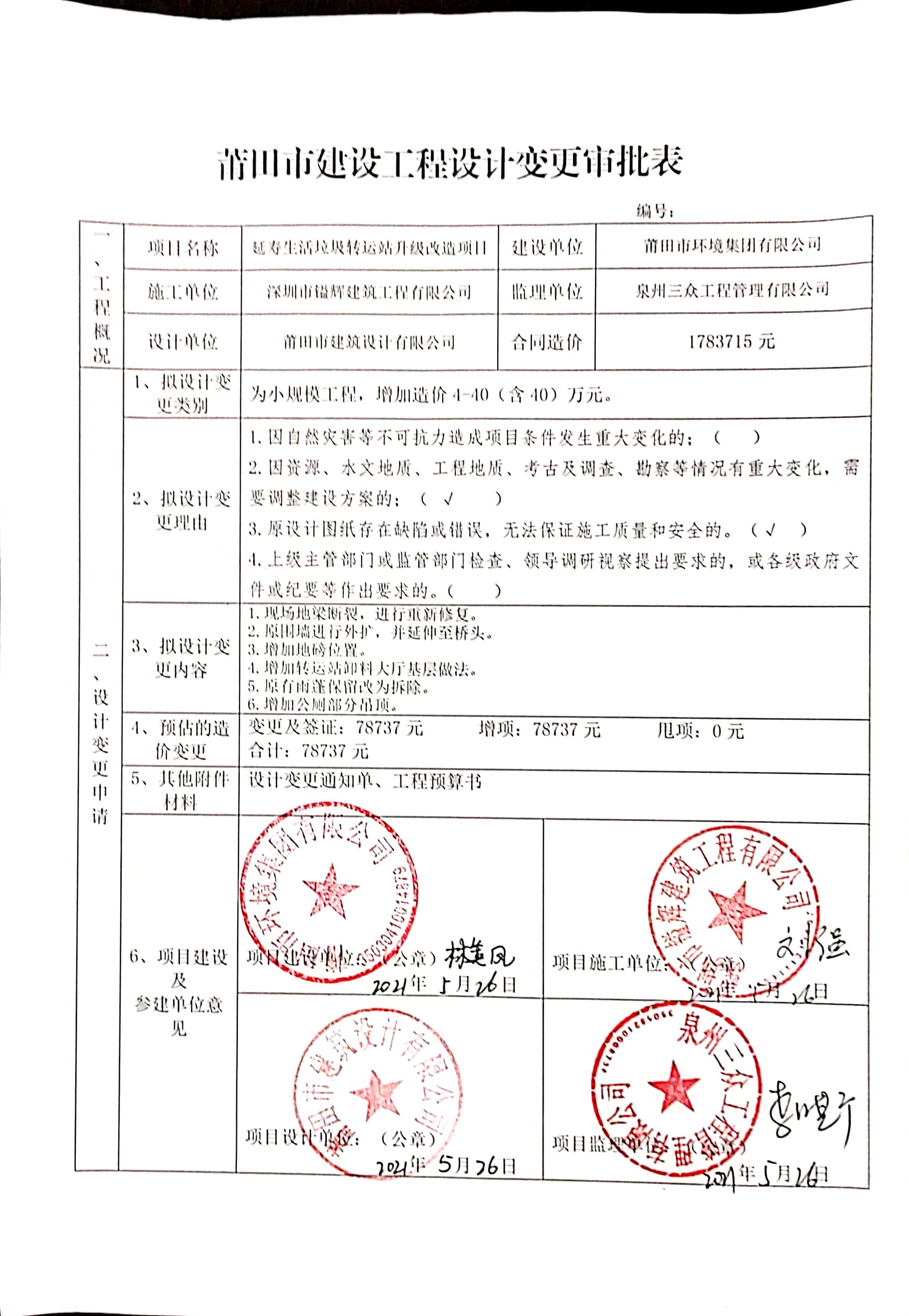 延寿生活垃圾转运站升级改造项目设计变更公示